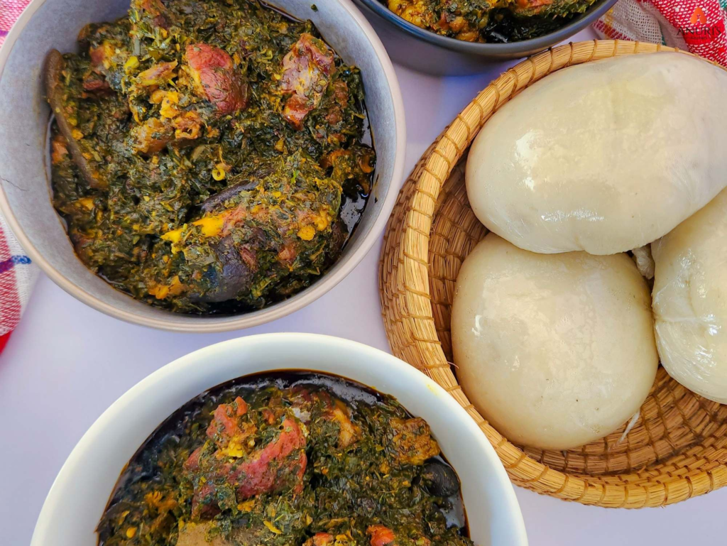 Soft, smooth, and slightly stretchy, akpu is perfect for scooping thick Afang soup. It balances the richness and makes every bite satisfying. You can get this in some African stores abroad.