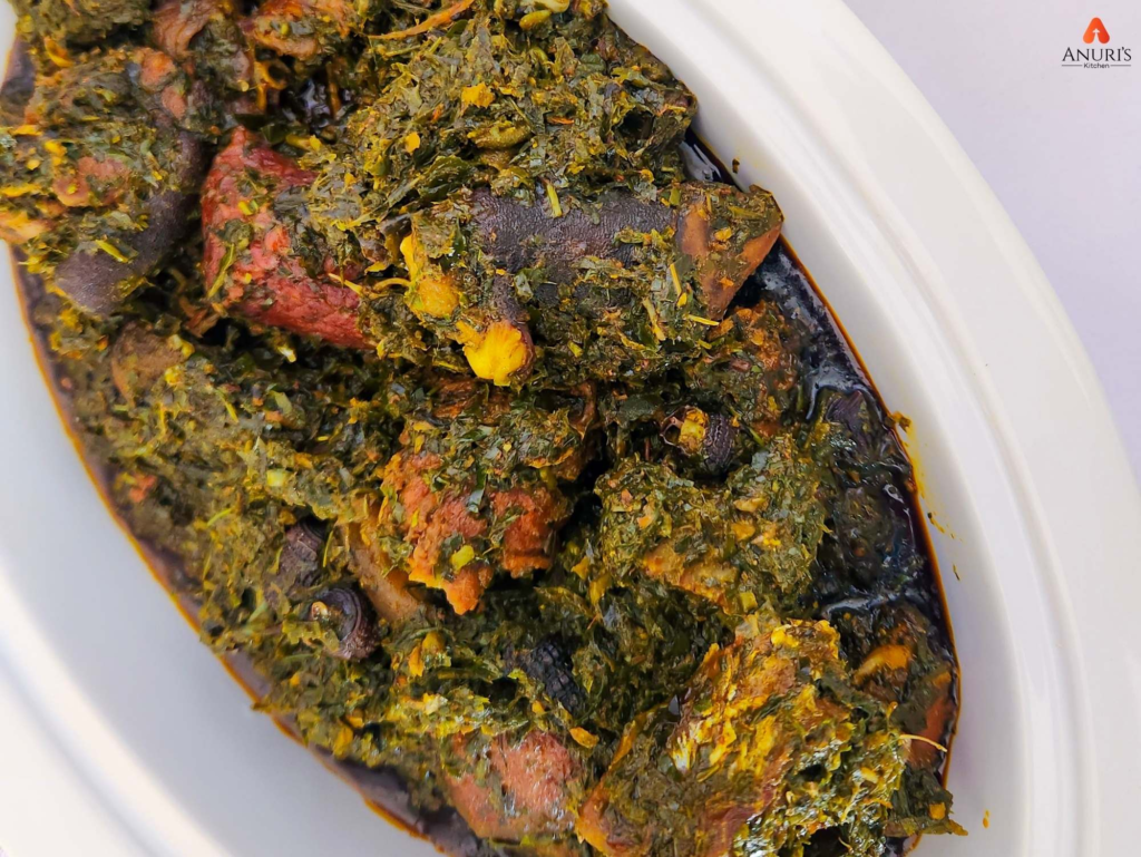 Your Afang soup should be thick, rich, well coated with oil and packed with flavour