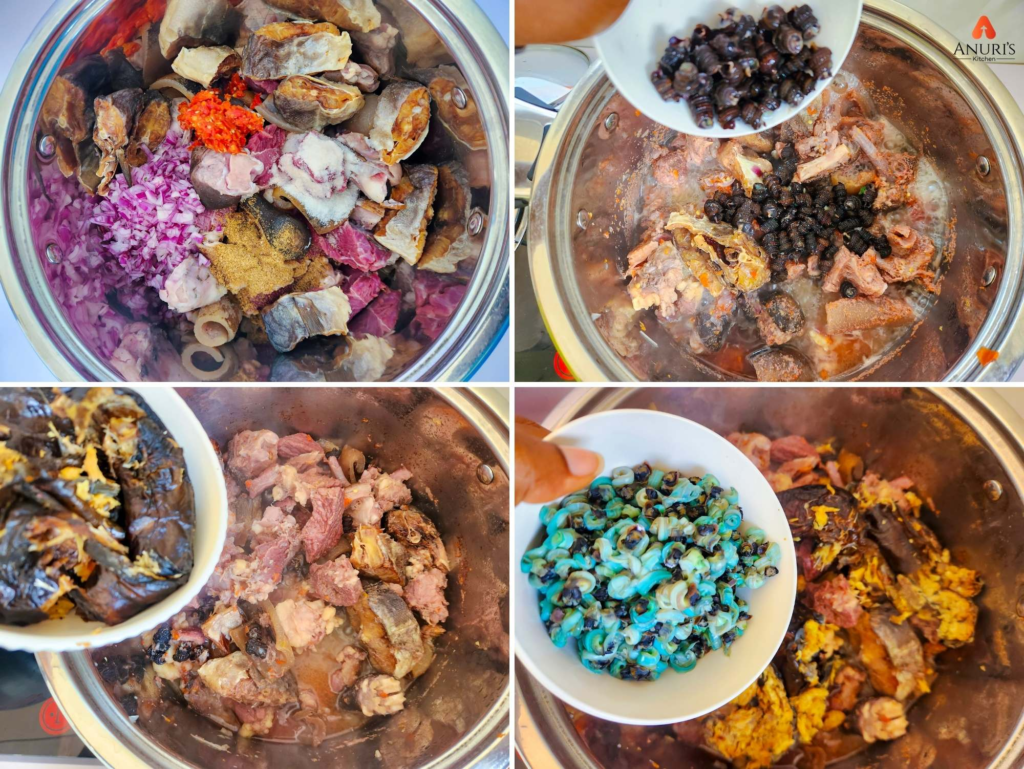 Each ingredient plays a specific role. Meat builds the base. Seafood adds depth. Spices enhance flavor. Afang leaves complete the dish with a distinct texture and taste.