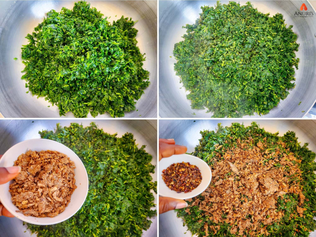 The next stage involves slicing. You cut the leaves into very thin strips. This step reduces the toughness and prepares the leaves for proper cooking. Thin slices help the leaf soften and cook evenly.